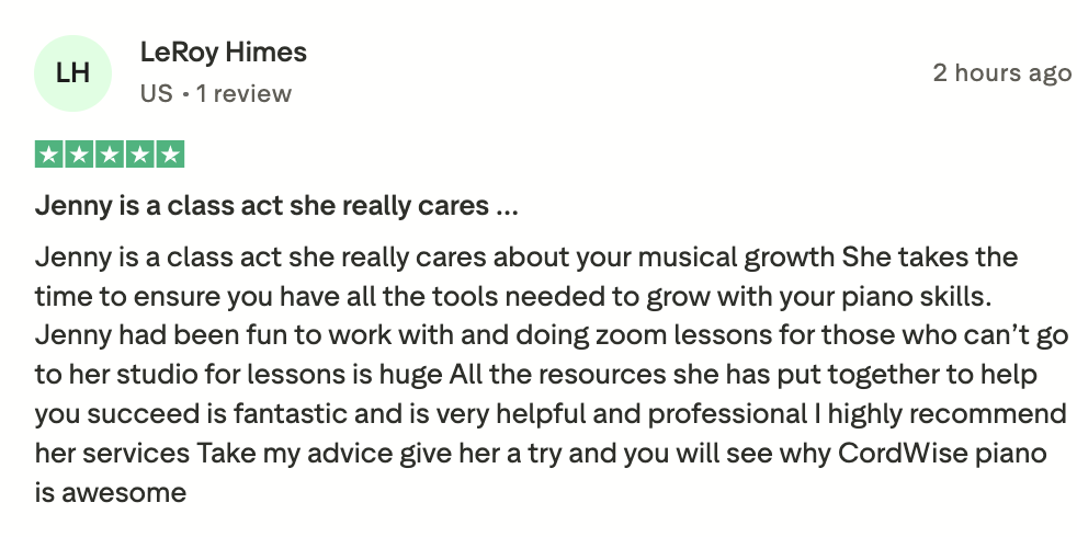 Through ChordWise Piano, I bring that same approach to adult learners—empowering you to play with confidence, creativity, and ease.