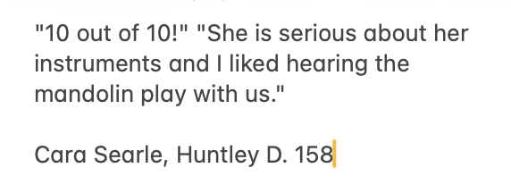 I’ve taught private lessons in piano, violin, viola, and ukulele from my home studio, accompanied and coached chamber music, and led a thriving public school orchestra program. I hold advanced degrees in piano performance and have served on college music faculties, always with a commitment to helping students grow musically—at any age or skill level.